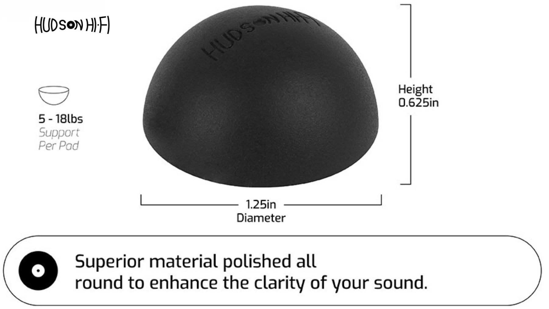 The Hudson HiFi Platinum Silicone Feet's sturdy Durometer 20 (Shore A) are perfect for 5-18 lbs components. Unlike solid stick on rubber feet, these won't scratch or ruin your device or surfaces. Each is 1.25" in diameter and 1.25" tall, and can withstand temperatures of -40°C ~ +240°C